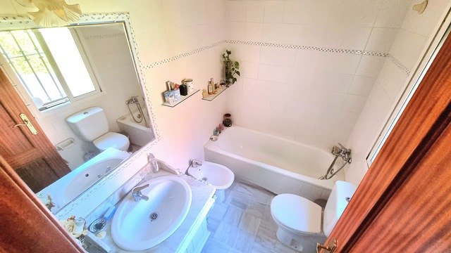 Ya en la planta superior, tenemos el dormitorio principal, con vestidor y cuarto baño placa ducha; 2 habitaciones más y un baño completo de bañera. Muy buen estado.