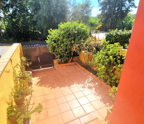 La vivienda tiene porche delantero y patio trasero. En planta baja tenemos hall de entrada, salón comedor, una habitación, aseo y cocina; desde donde accedemos al patio trasero.